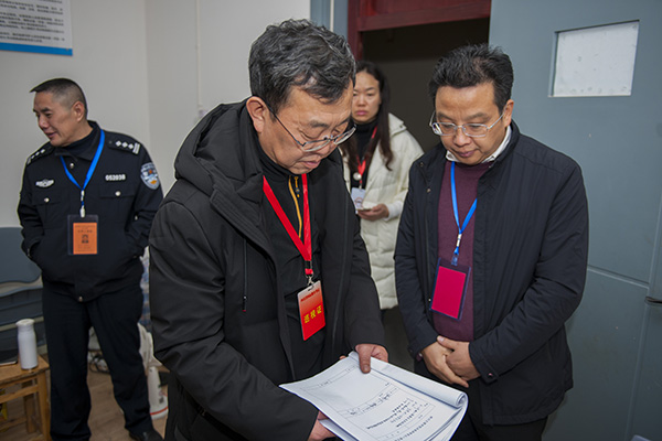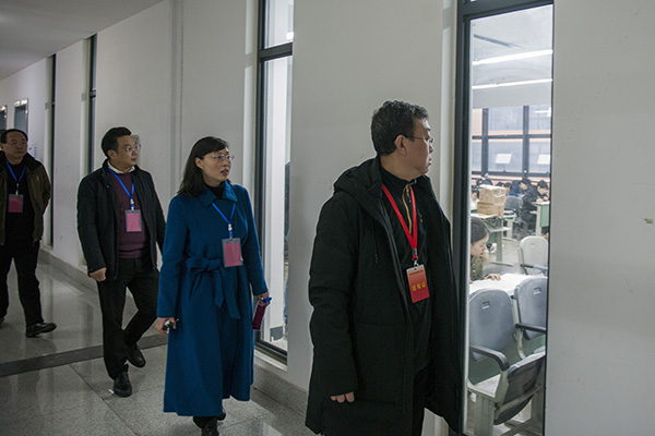 曹国栋一行人听取我校关于本次考试的组织准备情况汇报,先后巡视试卷保密室、考务办公室、纪检办公室、考试指挥中心,查看各考场的考试环境和考场秩序,仔细询问了考试管理、安全保障等工作细节,并对工作在考试管理第一线的工作人员致以亲切问候。