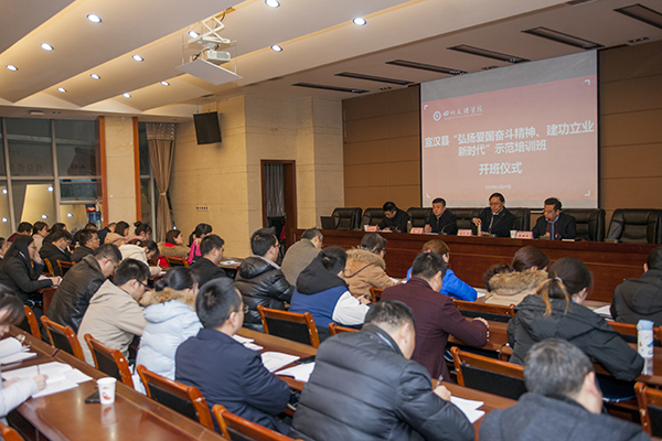 12月27日上午,宣汉县“弘扬爱国奋斗精神、建功立业新时代”示范培训班在我校开班。党委书记王成端,宣汉县委组织部部长杨轶、副部长孙华均出席开班仪式,副校长李壮成主持开班仪式。