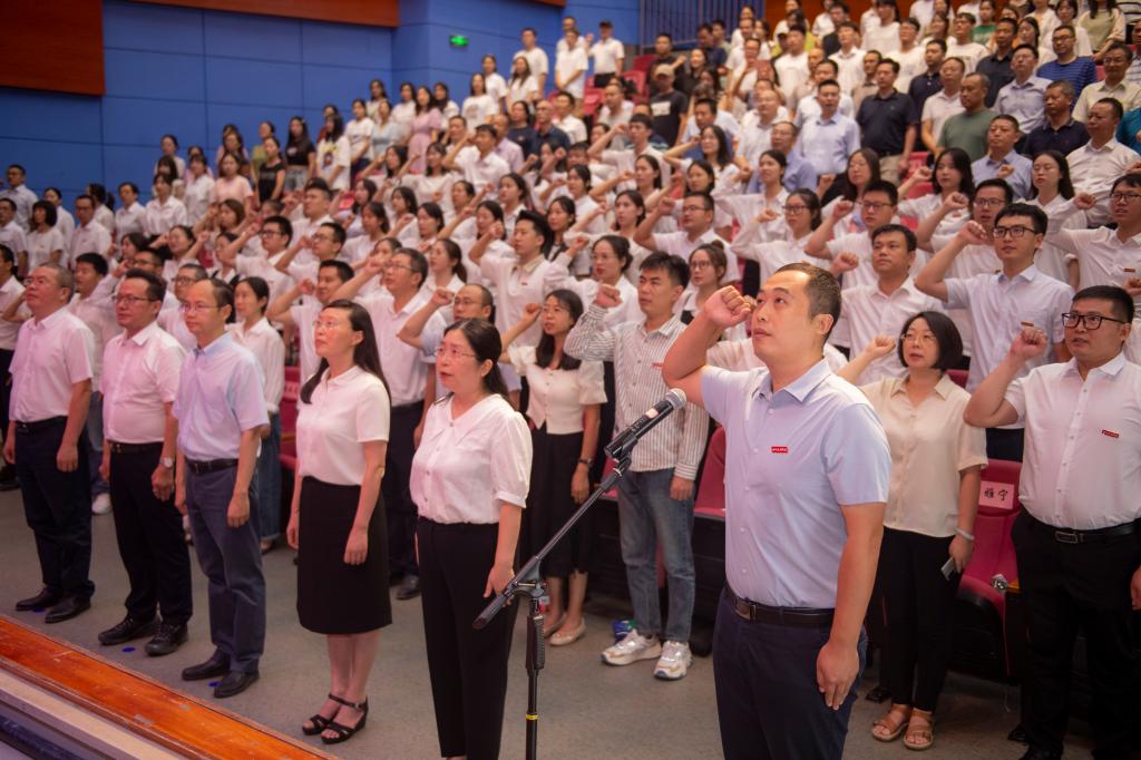 2023年度四川省优秀教师,体育学院孙亮亮教授带领新教师庄严宣誓。