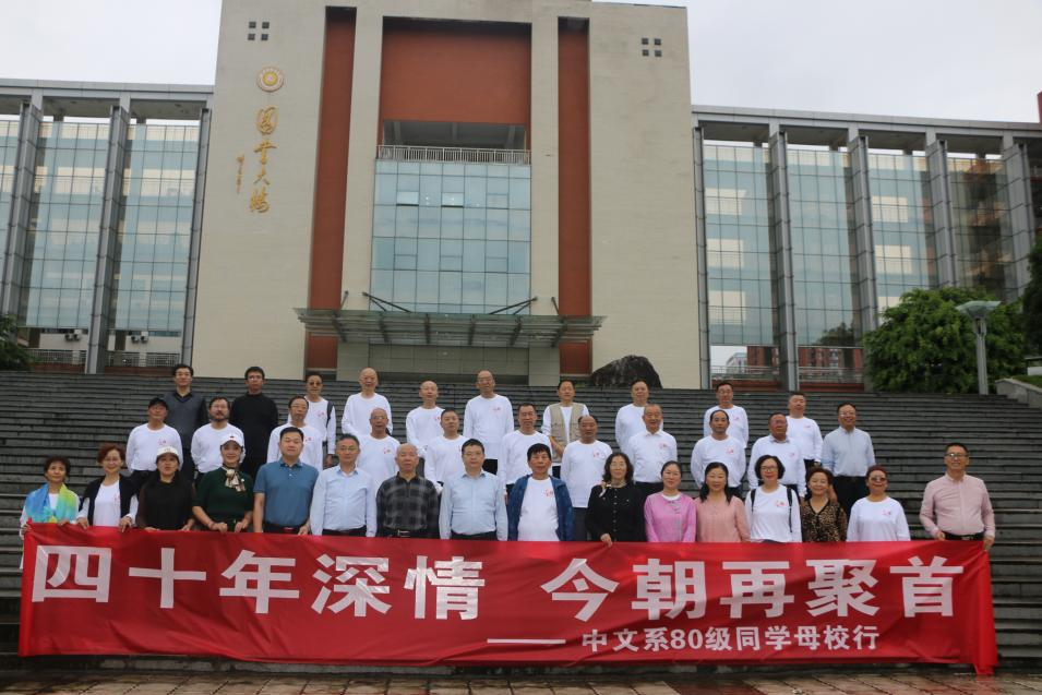 9月23日,我校中文系80级校友,带着对母校的感恩之情,在毕业40周年回校温情相聚,共忆青春往昔,共话母校发展。学校校长、校友总会会长侯忠明、副校长邓杰参加返校活动,校友工作办公室主任杨成林、文学与传播学院党委书记冉林、院长曾宪文接待陪同。