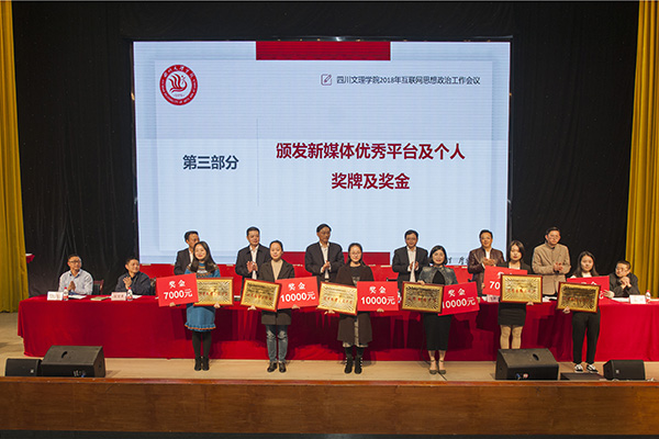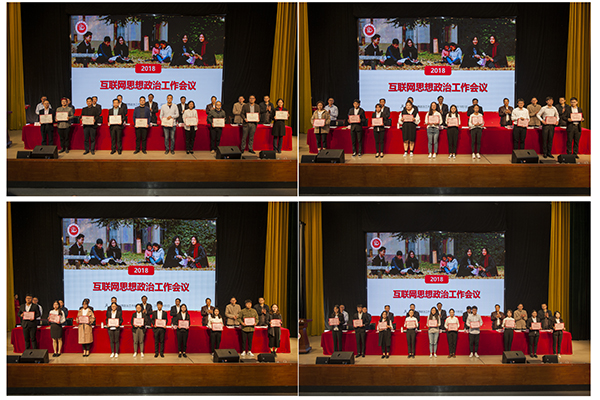 党委副书记雷超宣读表彰新媒体优秀平台及先进个人的决定,与会校领导及职能部门负责人为获奖师生颁奖。