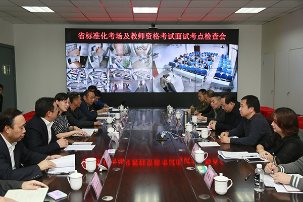 省教育考试院一行首先实地查看了第一教学楼和艺术传媒大楼的标准化考场、试卷保密室、试卷分发室、书画教室和考务指挥中心,查阅了有关资料。随后在考务指挥中心召开检查交流会,听取了学校对教师资格考试面试考点和研究生招生考试标准化考场建设的情况汇报,反馈检查意见。副校长李壮成主持检查汇报和意见反馈会。