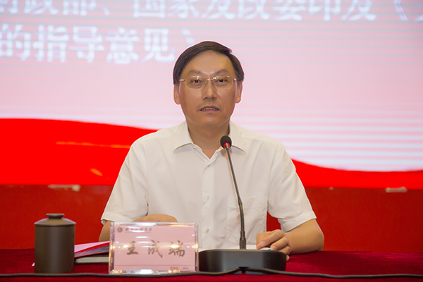 王成端强调,我校第一次党代会是全校师生员工政治生活中的一件大事,是一次事关学校前途、命运的大会,不仅要使学校党的建设在体制、机制上得到进一步完善,而且更为重要的是,这次大会将为学校的未来发展确定目标、方向,指明道路,是学校发展史上一个非常重要的里程碑,必将对学校未来发展产生深远的影响。全体干部和有关部门精心准备、细心谋划、真心支持、全心参与,确保大会能够胜利地召开。我校将于2019年4月接受教育部本科教学工作审核评估。王成端指出,此次评估将对学校近年来的教学改革和应用型人才培养体系建设进行全面检查和集中指导,是学校总结办学经验、查找存在问题的大好机会,也是学校提升教育教学质量、促进转型发展的一次良好机遇,更是推动学校各项事业发展进步的强大推动力。下半年是学校迎评工作的集中攻坚冲刺阶段,他要求,全体师生员工必须做到心往一处想、劲往一处使,把迎评准备工作作为全部工作的重中之重来抓,齐心协力做好迎评条件的建设和迎评资料的准备。全力推动学校各项工作取得新突破,获得新进展,确保明年4月以优异的成绩通过本科教学工作审核评估。