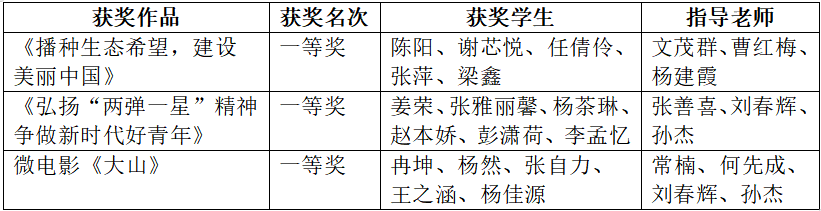 12月27日,中共四川省委教育工委公布了2023 年习近平新时代中国特色社会主义思想大学习领航计划主题教育活动省级评选结果,我校《播种生态希望,建设美丽中国》和《弘扬“两弹一星”精神 争做新时代好青年》两个作品获得2023 年四川高校大学生讲思政课公开课作品一等奖,我校微电影《大山》获得2023 年四川高校大学生微电影作品一等奖。