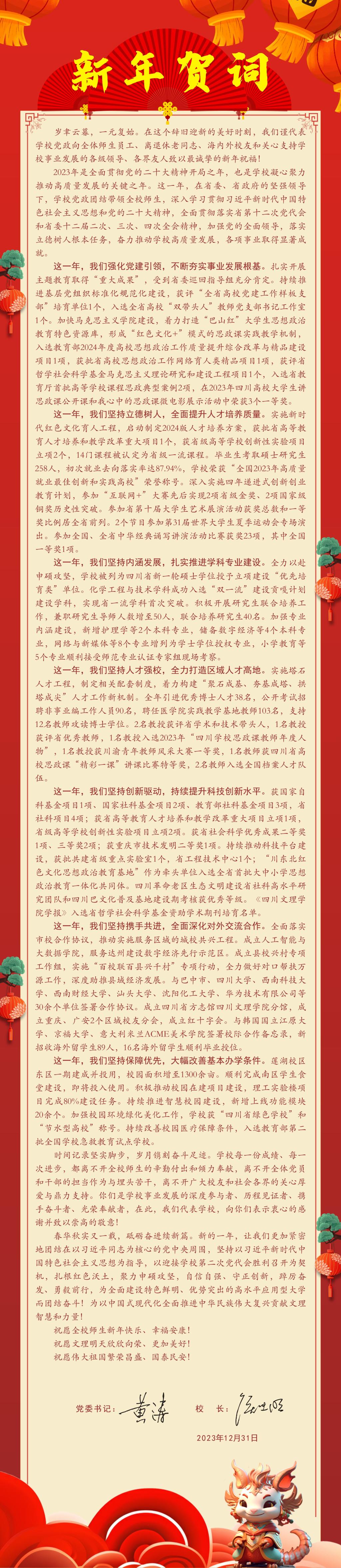 你好,2024!四川文理学院新年贺词!