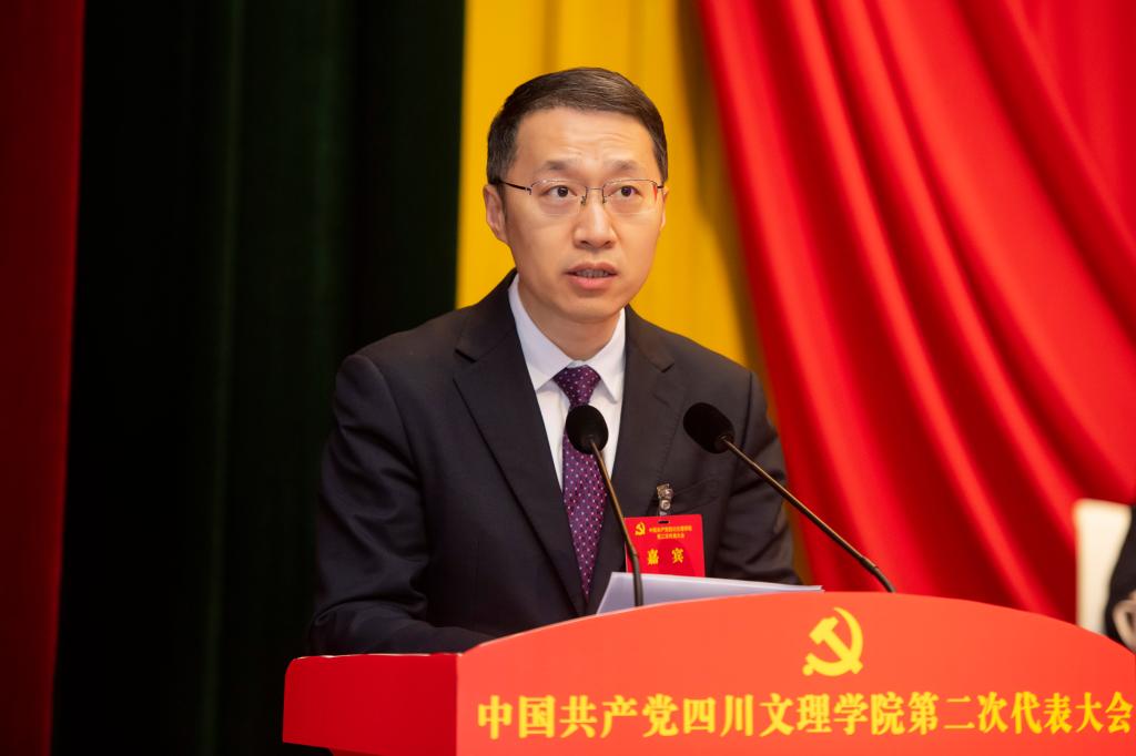 胡卫锋代表省委教育工委、教育厅向大会召开表示热烈祝贺! 向与会代表和全校师生员工致以诚挚问候!对学校发展取得的成就、作出的贡献给予充分肯定,并提出三点意见。希望学校坚定以习近平新时代中国特色社会主义思想为指导,深入学习贯彻党中央的大政方针和省委、省政府的决策部署,全面贯彻新时代党的教育方针和党的建设总要求,努力提高领导班子和干部队伍的思想政治素质和办学治校水平;要坚持以党的教育方针为指引,认真落实立德树人根本任务,始终坚持为党育人、为国育才的初心使命,深刻把握高等教育发展规律和全国全省教育发展大势,推动学校高质量发展,不断提高人才培养质量;要坚持以国家战略需求为导向,将办学发展放在党和国家事业全局、四川改革发展大局中去思考,充分发挥学校人才智力优势,提升服务经济社会发展能力,奋力在大有可为的新时代里大有作为。