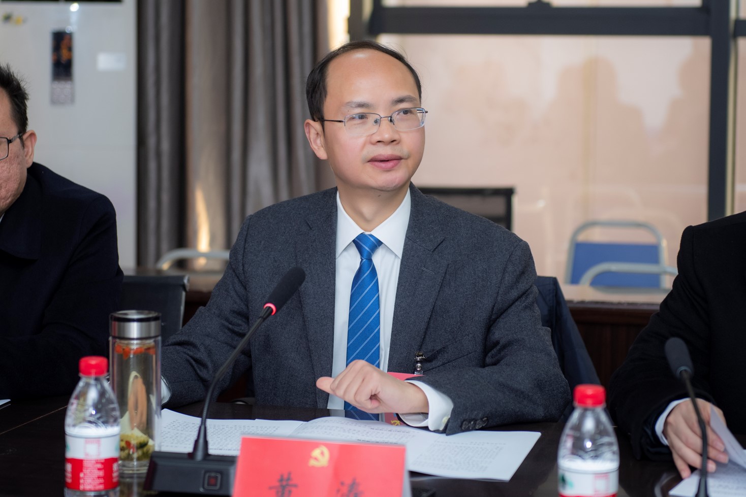 1月12日下午,各代表团团长会议召开,安排代表团分团预选工作。党委书记黄涛主持会议。