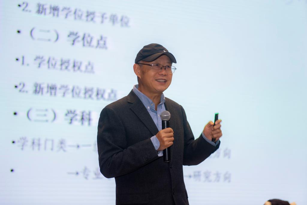 讲座中,姚云教授厘清了研究生教育中容易混淆的几组专业术语;结合生动详实的数据,系统介绍了高校开展研究生教育的制度设计背景、历史及工作思路;通过具体实例和自身调研经历,详细分析了研究生学位授权审核办法、标准;深入解读了新增硕士学位授予单位学科建设的条件、程序、要求等;并对我校的学科建设和硕士学位授予权申报工作提出了建设性意见。