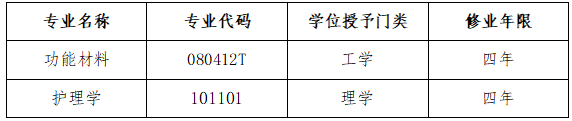 新增两个本科专业中,功能材料专业隶属于化学化工学院,护理学专业隶属于康养产业学院&医学院。学校将围绕建设高水平一流应用型大学的目标进一步加强对新专业的质量建设,坚持内涵式发展,立足行业、企业、产业和地方经济社会发展新需求,严格落实“专业质量国标”要求,进一步统筹优质教学资源,完善人才培养方案,加强新专业师资队伍和硬件建设,切实提高人才培养质量。