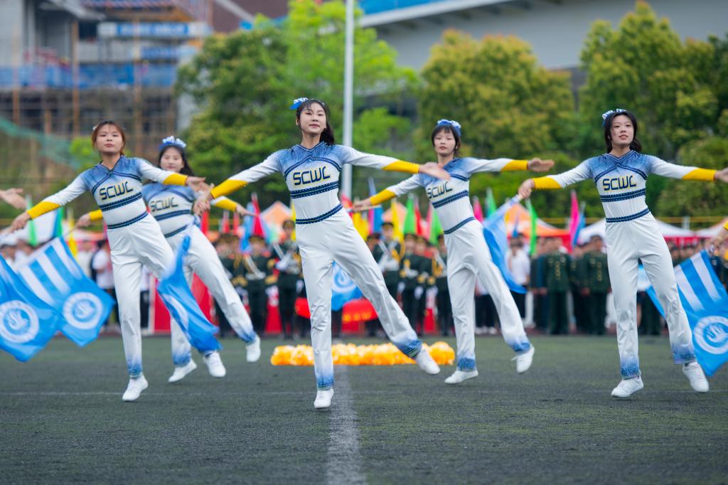 随着激昂的乐曲声响起,运动会开幕式在全校师生的翘首期盼中拉开帷幕。国旗、校旗、彩旗、校训、机关和各二级学院代表方队依次入场,各方队迈着整齐划一的步伐,喊着响亮的口号,展现出川文理人的激情与活力;开幕式舞蹈表演充满活力与激情,舞姿优雅而富有力量,队员们动感十足的表演给现场观众留下了深刻的印象,赢得在场师生的阵阵掌声,充分展现了学校师生团结奋进、积极向上的良好精神风貌和体育素养。