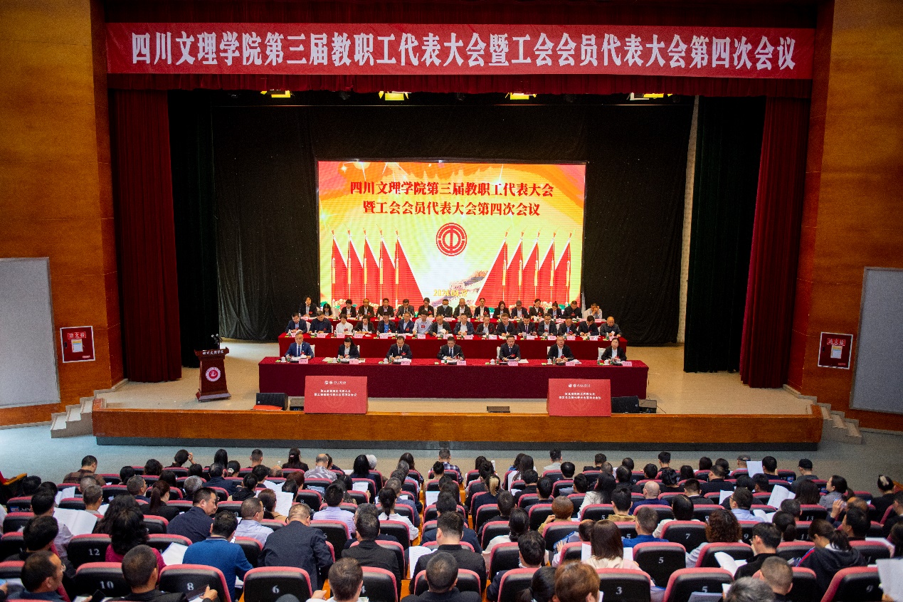 4月12日下午,四川文理学院第三届教职工代表大会暨工会会员代表大会第四次会议在莲湖校区开幕。党委副书记、校长侯忠明作《学校工作报告》。会议审议了《学校工作报告》《学校财务工作报告》《工会报告》以及《工会经费审查报告》。党委副书记、工会主席朱兴华主持会议并作闭幕讲话,党委副书记、纪委书记帅胤,党委常委、副校长徐晓宗、邓杰、程碧英、苟兴龙出席会议。