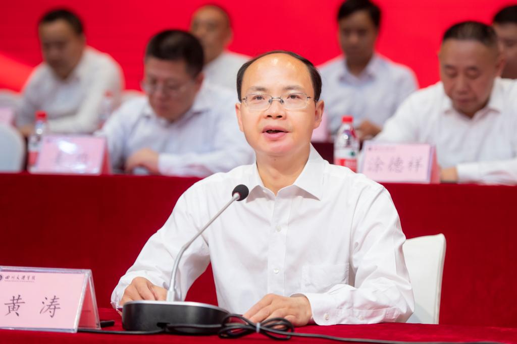 黄涛指出,习近平总书记对青年的寄语饱含期待、催人奋进,为青年成长成才注入强劲动力,为做好青年工作指明正确方向。要求新时代的川文理青年牢记总书记嘱托,感恩奋进,为中国式现代化挺膺担当。一要把牢“有理想”的首要标准,增强做中国人的志气。早立志、立大志,从内心深处厚植对党的信赖、对中国特色社会主义的信心、对马克思主义的信仰,以坚定的理想信念筑牢青年的精神之基。二要践行“敢担当”的时代要求,增强做中国人的骨气。以主人翁、建设者、接班人的姿态,加强生成性学习、涵养开拓性思维,注重联系实际、勤于实践,敢于攻坚克难,努力成为民族之脊梁,国家之栋梁。三要锤炼“能吃苦”的坚韧品格,增强做中国人的底气。珍惜韶华、不负青春,锻炼意志、强壮筋骨,增强学习紧迫感,如饥似渴、孜孜不倦地学习,提升个人修为,练就过硬本领,在经受苦难中成长,画好向上向善“人生曲线”。四要弘扬“肯奋斗”的光荣传统,增强做中国人的生气。保持奋进者姿态、激发创造性张力,坚定文化自信,践行社会主义核心价值观,在办好每一件小事、完成每一项任务、履行每一项职责中见真章、见精神,以实干实绩擦亮青春底色。