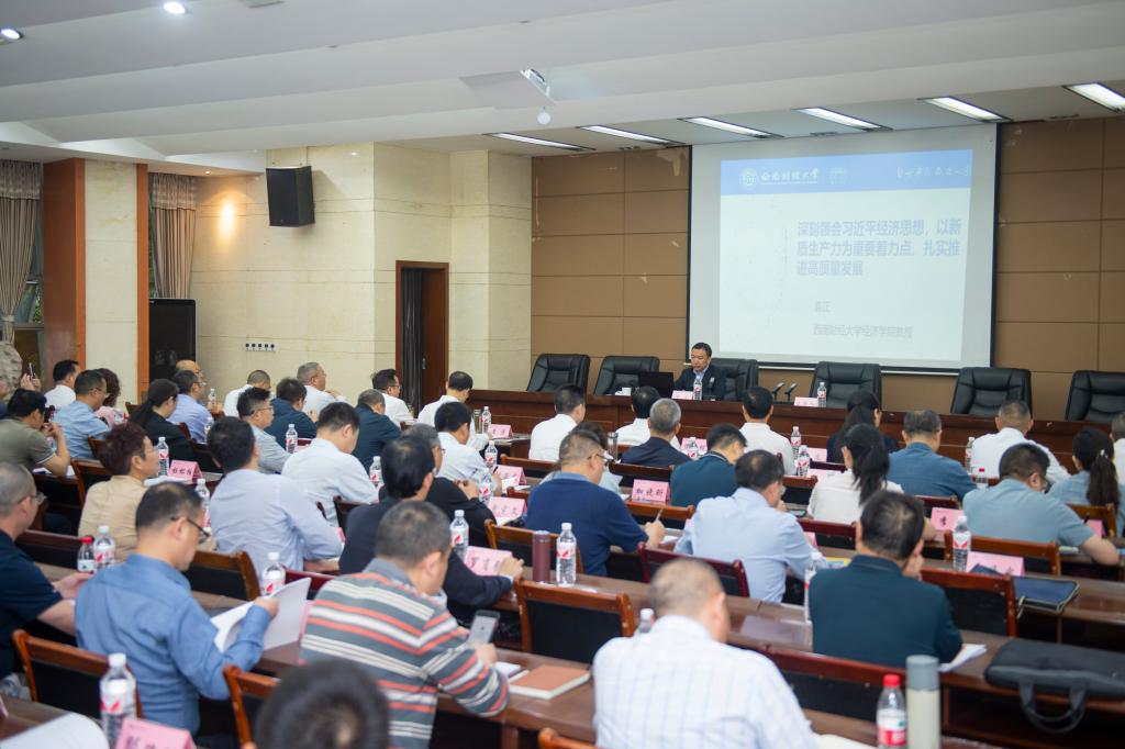 5月10日,党委理论学习中心组在弘德楼一楼会议室召开2024年第4次(扩大)学习会,专题学习习近平总书记关于以发展新质生产力为重要着力点、扎实推动高质量发展的重要论述。会议邀请了西南财经大学经济学院袁正教授作专题辅导报告,党委书记黄涛主持学习会并作总结讲话。