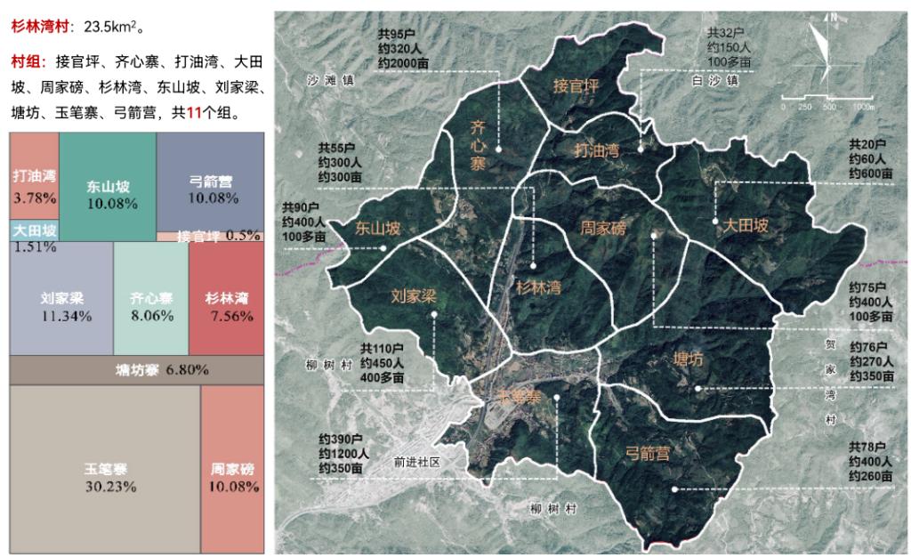 杉林湾村是我校定点帮扶的村庄,位于万源石塘镇东北,幅员面积23.5平方公里,村民3902人,硒元素富集,自然生态条件优越,文化底蕴厚重,地理交通条件优越,达陕高速互通与城万快速通道在此交汇,距离龙潭河景区23公里,八台山景区21公里,为乡村振兴“产旅融合发展”提供了基础保障。