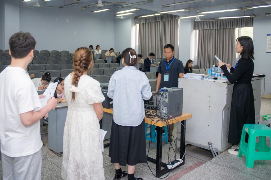 校领导一行巡视了候考室、抽题室、备考室及面试室,对本次组考工作予以了充分肯定,并强调指出,中小学教师资格考试是全面贯彻立德树人根本任务和建设新时代高质量中小学教师队伍的重要举措,一定要提高政治站位,严格按照教育部和四川省教育考试院有关规定组织实施考试,严格考试纪律,规范考试流程,保证公平公正,要把握细节,做好统筹,人员到位、职责到人,确保高质量完成考试工作。