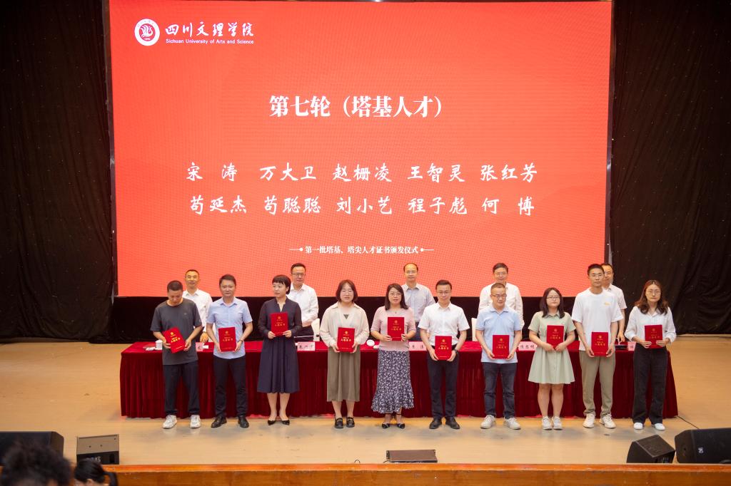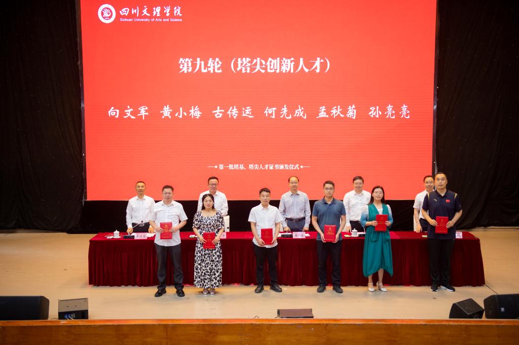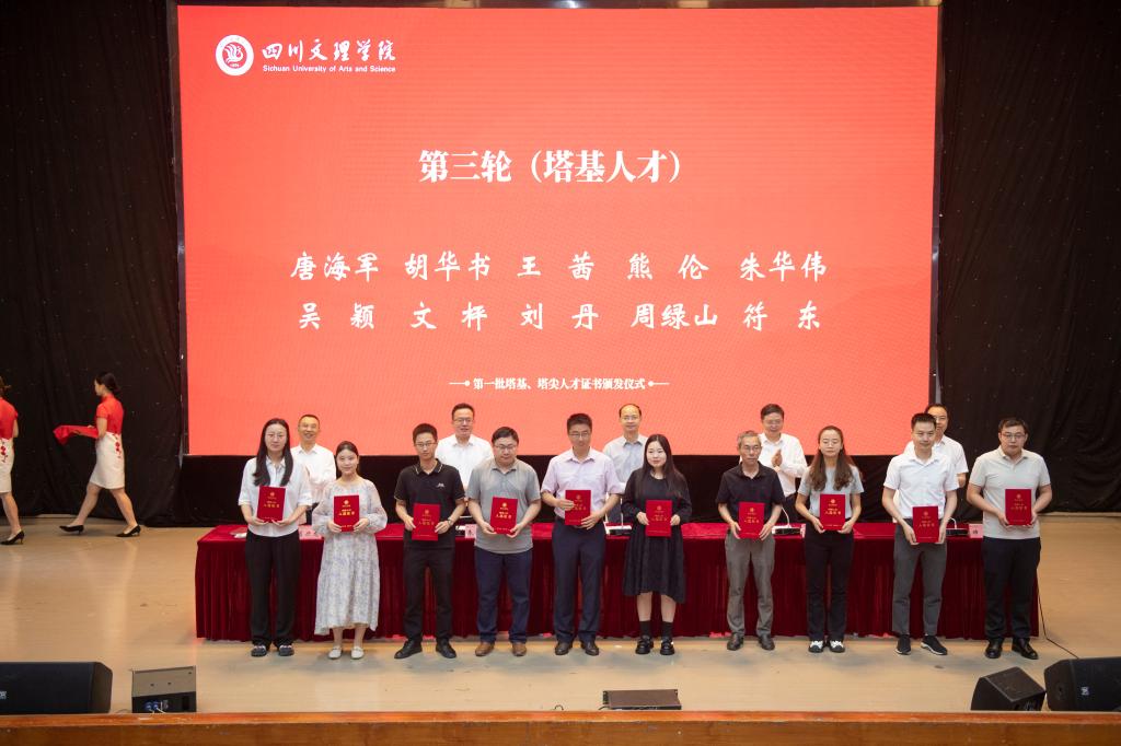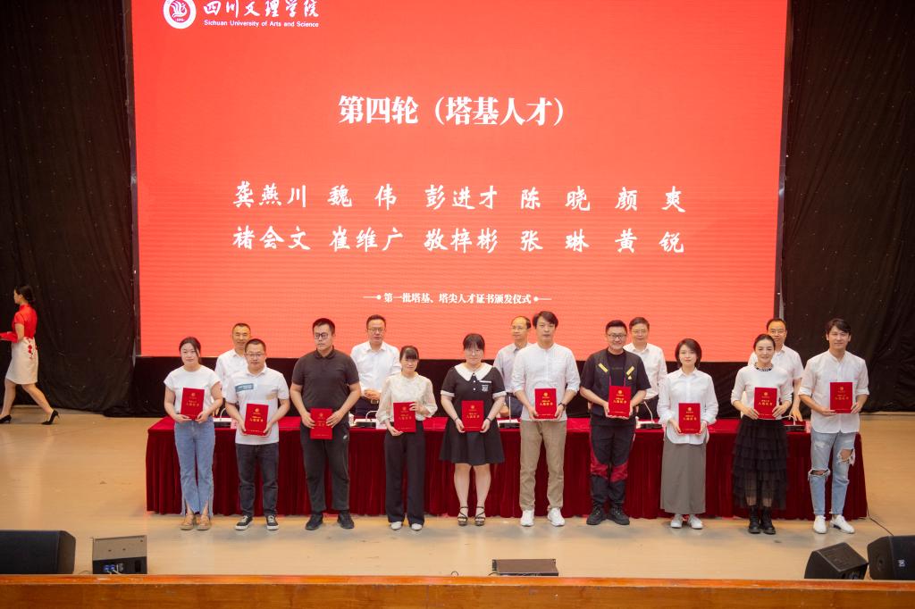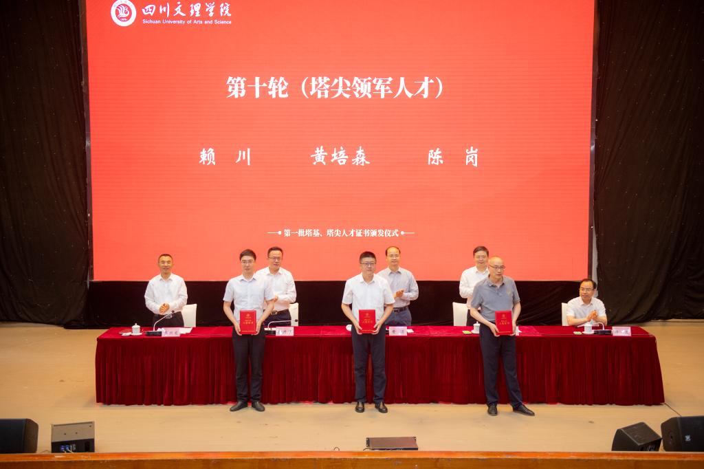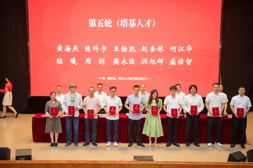 黄涛、侯忠明、朱兴华、帅胤、苟兴龙为入选的塔基、塔尖人才颁发证书。
