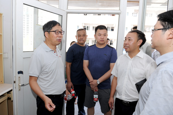 8月9日上午,校长刁永锋、党委副书记侯忠明来到食堂、学生公寓维修现场及招生录取现场,检查指导各项工作开展情况,亲切慰问一线工作人员。
