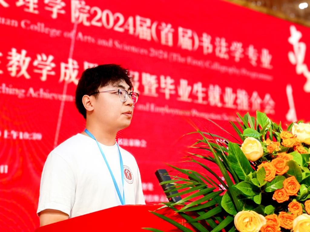 戴跃对此次教学成果汇报暨毕业生就业推介会的成功举办表示祝贺,对我校书法学专业人才培养工作取得的成绩给予充分肯定。他指出,四川文化底蕴深厚,全省当代书法事业蒸蒸日上,成绩凸显,离不开高校书法教育的蓬勃发展。省书协是党和政府联系书法界的桥梁和纽带,主要工作是加强书法艺术队伍建设和行业建设、不断培育书法新生力量、推动书法文化传承,与高校的书法教育目标一致。长期以来,省书协为高校书法学专业建设和人才培养做了很多有益工作,他希望全省书法界和书法教育界团结一心,贯彻落实习近平文化思想,担负起新的文化使命,深度挖掘我省书法资源的时代价值,共同推动我省书法事业实现新发展、开创新局面、展现新作为,为新时代中国书法事业和四川文化强省建设贡献力量。