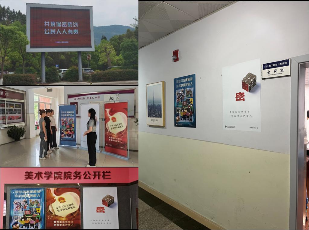 利用办公区域、教学楼、会议室等宣教阵地,张贴保密宣传教育海报,营造知法学法浓厚氛围;综合运用校园电子屏、广播电视等多种载体,播放保密公益宣传片、展示保密教育警示案例