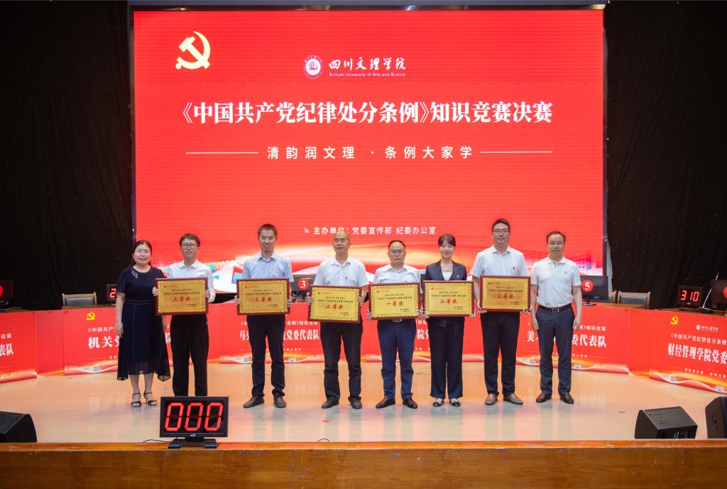 6月13日,党委宣传部、校纪委办公室联合策划举办的“清韵润文理 条例大家学”《中国共产党纪律处分条例》知识竞赛(决赛)在学校艺术传媒大楼多功能演播厅顺利举行。省纪委监委驻校纪检监察组组长、校党委副书记、纪委书记帅胤和党委常委、副校长程碧英出席决赛现场,学校各职能部门负责人及部分二级学院党委书记亲临现场观赛。比赛特别邀请了政法学院、知识产权学院党委书记岳臣忠、院长刘长江和朱仕金博士组成专家答疑组。