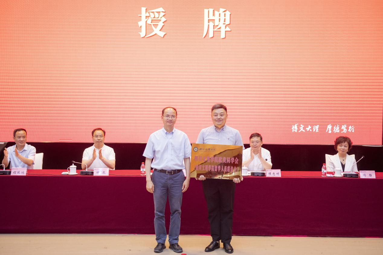 会上宣读了四川文理学院欧美同学会(四川文理学院留学人员联谊会)第一届理事会新当选的会长、副会长、秘书长、副秘书长名单。同时为新成立的四川文理学院欧美同学会(四川文理学院留学人员联谊会)授牌。