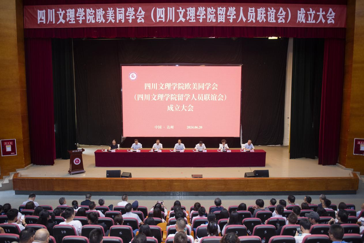 6月20日,四川文理学院欧美同学会(四川文理学院留学人员联谊会)成立大会在莲湖校区多功能厅举行。党委书记黄涛授牌并讲话,四川省欧美同学会(四川省留学人员联谊会)秘书长兼秘书处处长冯静出席讲话,校长侯忠明主持会议。