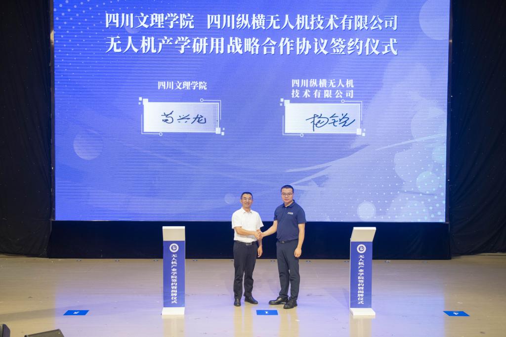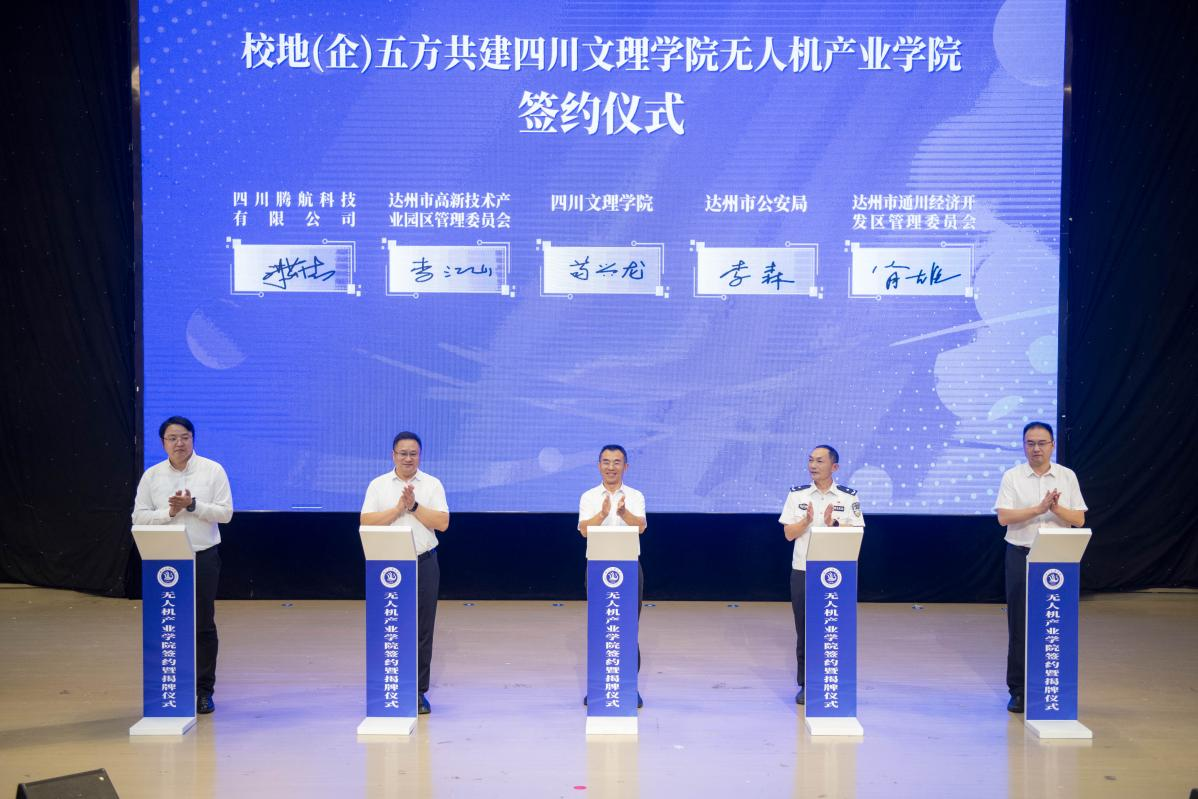 6月21日,由四川文理学院、达州市公安局、达州高新技术产业园区管理委员会、达州通川经济开发区管理委员会、四川腾航科技有限公司共同发起成立的“四川文理学院无人机产业学院”签约暨揭牌仪式在莲湖校区艺术传媒大楼多功能厅举行。同时学校与四川纵横无人机技术有限公司签订了战略合作框架协议。