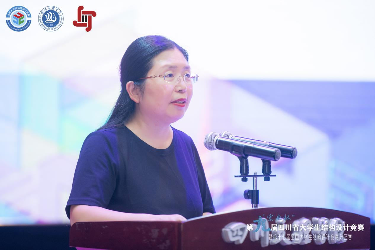 副校长程碧英代表学校向所有参与本次大赛的各位领导、专家评委、师生及远道而来的嘉宾和关心支持本次赛事的朋友们表示最诚挚的感谢。她指出,教育是立德树人,更是创新引领。“创新结构、设计未来”不仅是本次竞赛的核心主题,更是我校对学科专业建设的要求。本次比赛既是对参赛选手们专业知识与实践能力的检验,更是对我校教育教学水平的一次全面展示。在大赛中涌现出了一批优秀青年才俊,正是未来社会发展的重要支撑和宝贵财富。