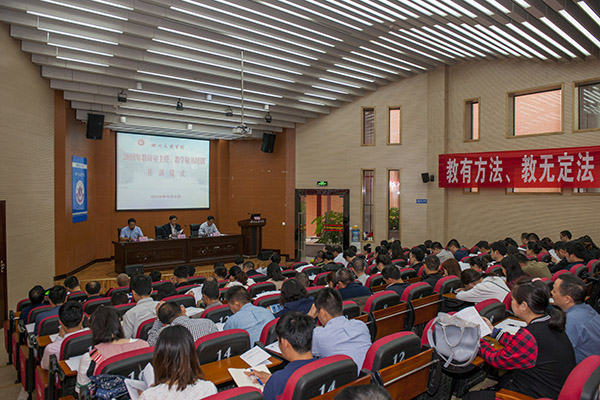 教务处负责同志简要介绍了本次培训活动的基本情况,外国语学院教师刘士川作为学员代表发言。仪式结束后,王成端作了题为《新时代高校教学管理人员的素质要求与队伍建设》的专题讲座。