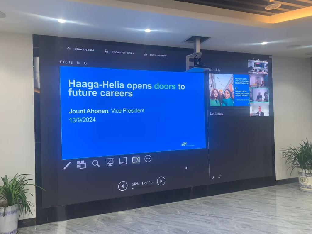 9月13日,四川文理学院与芬兰哈格哈里亚应用科学大学(Haaga-Helia University of Applied Sciences,Finland)如期召开第二次远程视频会议。双方对上一次的合作交流进行了回顾总结,就下一阶段的工作重点及推进方式达成共识,确定今年11月邀请哈格哈里亚应用科学大学来我校签署合作协议。