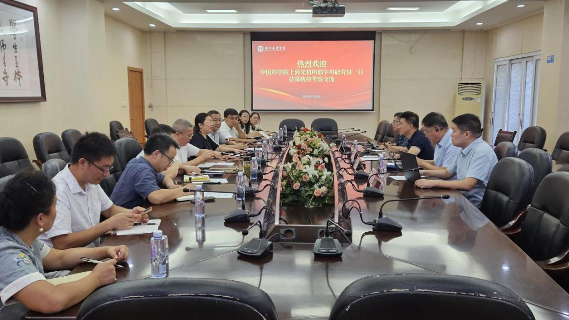 近日,中国科学院上海光学精密机械研究所所务委员邵宇川研究员、祖继锋研究员、重庆大学薛方正教授、重庆邮电大学马勇教授组成的专家组来校开展科研项目交流。