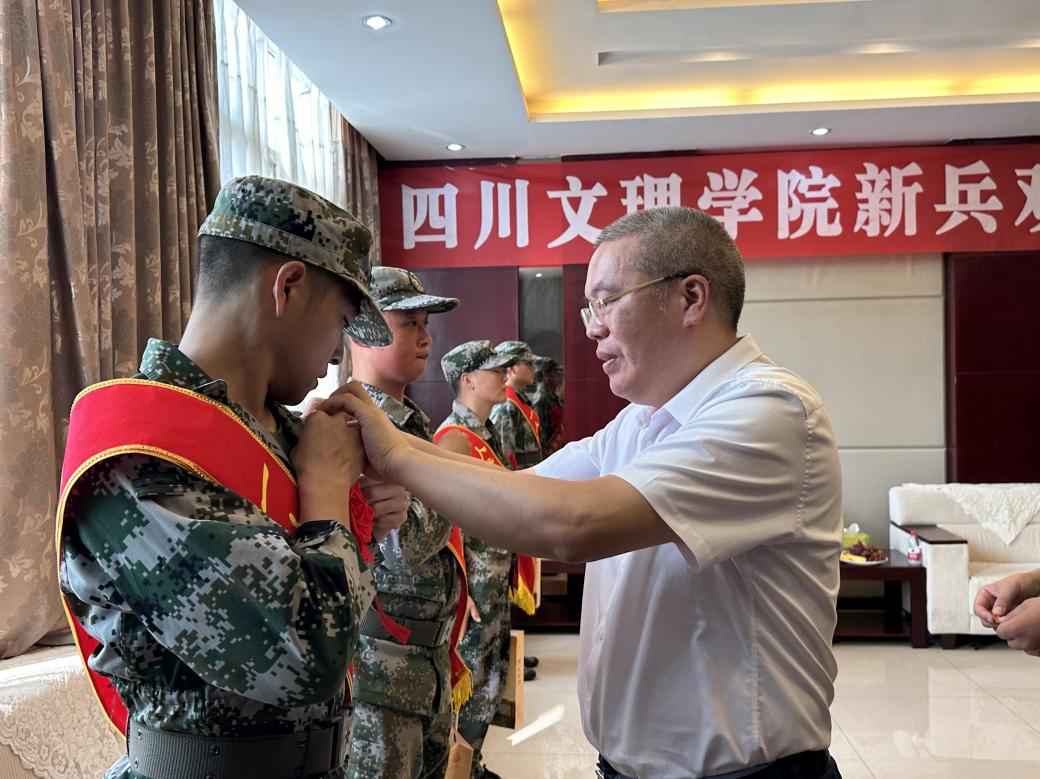 随后,徐晓宗和高军政为新兵们和退役复学学生佩戴上四川文理学院校徽,告诉学子们无论走到哪里,都不忘是四川文理学院的一份子,始终保持对母校的深厚情感,并在军旅生涯中发扬“博文大理,厚德笃行”的精神,为国家贡献自己的知识与力量,为母校争光。