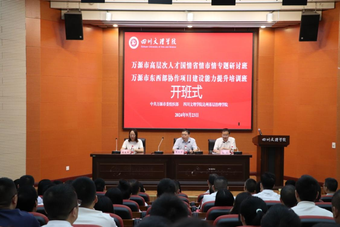 9月23日,万源市高层次人才国情省情市情专题研讨班、东西部协作项目建设能力提升培训班在我校莲湖校区同时开班。学校校长、达州基层治理学院院长侯忠明出席开班仪式,马克思主义学院院长、达州基层治理学院副院长孙杰主持开班仪式。