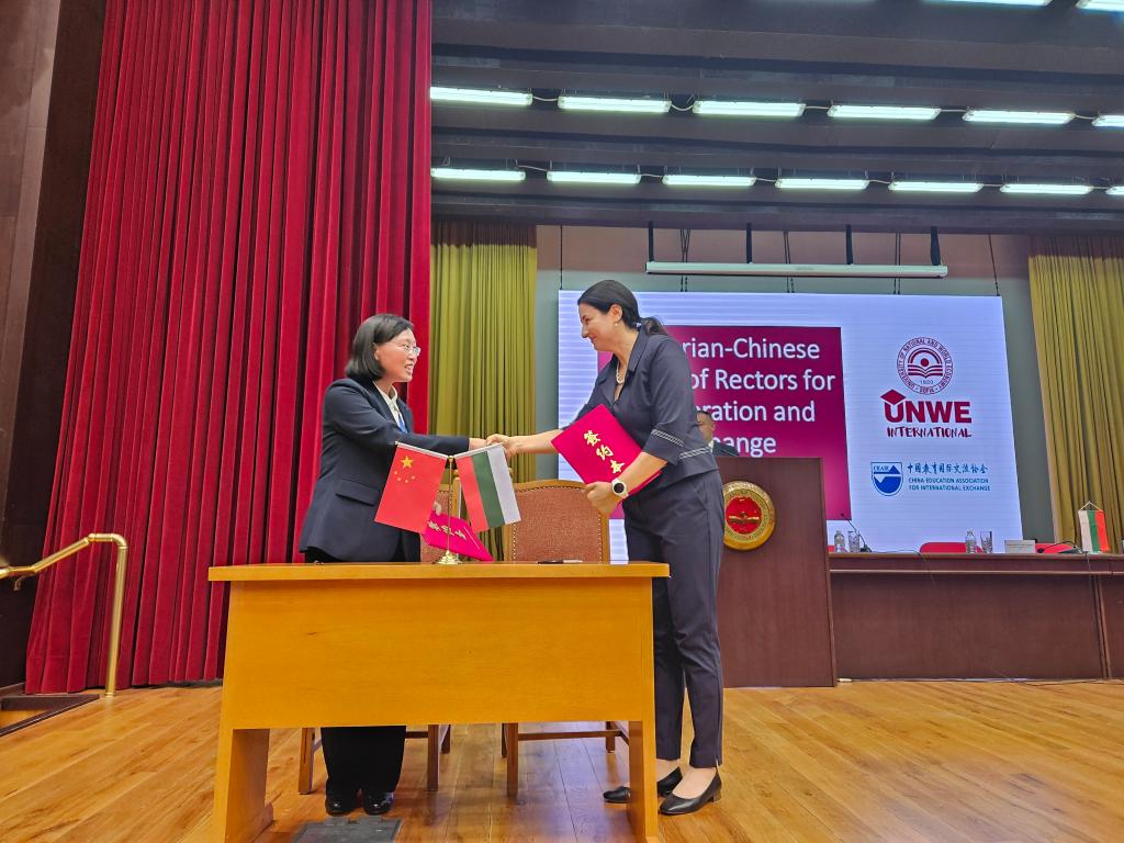 在保加利亚,邓杰参加了“第二届中国-保加利亚大学校长论坛”,访问会见了大特尔诺沃大学国际关系学院副院长安娜˙伊万诺娃教授、大特尔诺沃大学孔子学院院长伊斯克拉˙曼多瓦博士、国立音乐学院校长萨瓦季米特洛夫教授,双方就开展科研学术交流、交换生项目、合作办学项目等进行了商议,并与两校签署了校际合作意向书。