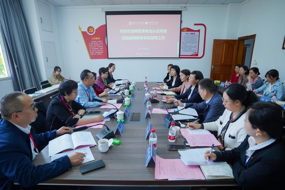 侯忠明感谢专家组和领导莅临我校指导师范类专业建设,并以“赓续师范传统、担当育人使命,以专业认证推动学校内涵式高质量发展”为题就学校教师教育工作总体情况作补充说明。他说,师范教育是我校鲜明厚重的办学底色,质量提升是学校师范教育的始终追求,学校不断优化师范专业结构布局,创新师范人才培养机制,深化教师教育教学改革,保障教师教育办学资源、构建教师教育质量文化,整合区域教师教育资源,不断凸显师范教育的培养质量和特色,全面保障和提高师范专业人才培养质量。本次认证工作,既是对我校师范专业培养质量的一次全面检验,也给全校师生提供了一次学习求教的难得机会。恳请专家全面考查、把脉问诊,多提宝贵意见建议,学校将按照以评促建、以评促改、以评促强的工作思路,以务实的作风,积极配合、全力支持、认真整改,确保本次师范类专业认证工作顺利进行。