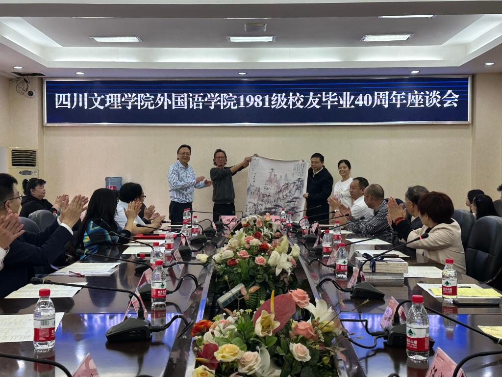 校友们纷纷表示,母校的高质量发展令他们倍感自豪,将在今后的工作中继续关心和支持母校,为母校的发展贡献力量。校友为母校赠送屏风、签名手绘以及《英美现代主义诗歌与审美现代性研究》著作,表达对母校和恩师们的感激之情。