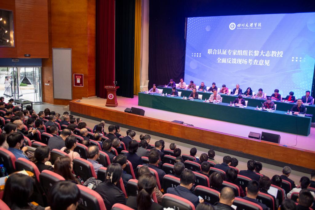 黎大志教授代表联合认证专家组反馈了考查总体印象。他说,四川文理学院高度重视师范生培养和师范类专业认证工作。学校成立了学校和学院师范认证的工作领导小组,整体部署、分批推进,在师资队伍、办学条件保障、教学管理制度建设等方面均得到了加强;学校按照“主线”和“底线”要求,围绕“反向设计”三个目标、“正向施工”三个支撑,以及“底线评价”三个机制认真开展师范类专业对标建设,并取得了明显成效。学校地处革命老区,红色文化和思政育人成效明显。学校积极参与川陕革命根据地博物馆、王坪烈士陵园等共建协同育人基地,思政课教师自编红色文化校本教材、开设红色文化思政实践课程,打造红色文化大讲堂,师生先后创作的《魂铸巴山》《赤血同行》《忆红旗》等艺术作品在省内外产生了较大影响。学校的教风学风优良,教师爱岗敬业、奉献教育事业,全身心投入教学工作,教学态度严谨;校园里每个角落都能看到学生学习的身影,图书馆里学习氛围浓厚;在优良的教风学风影响下,学校培养了一批有影响的社会栋梁之才。