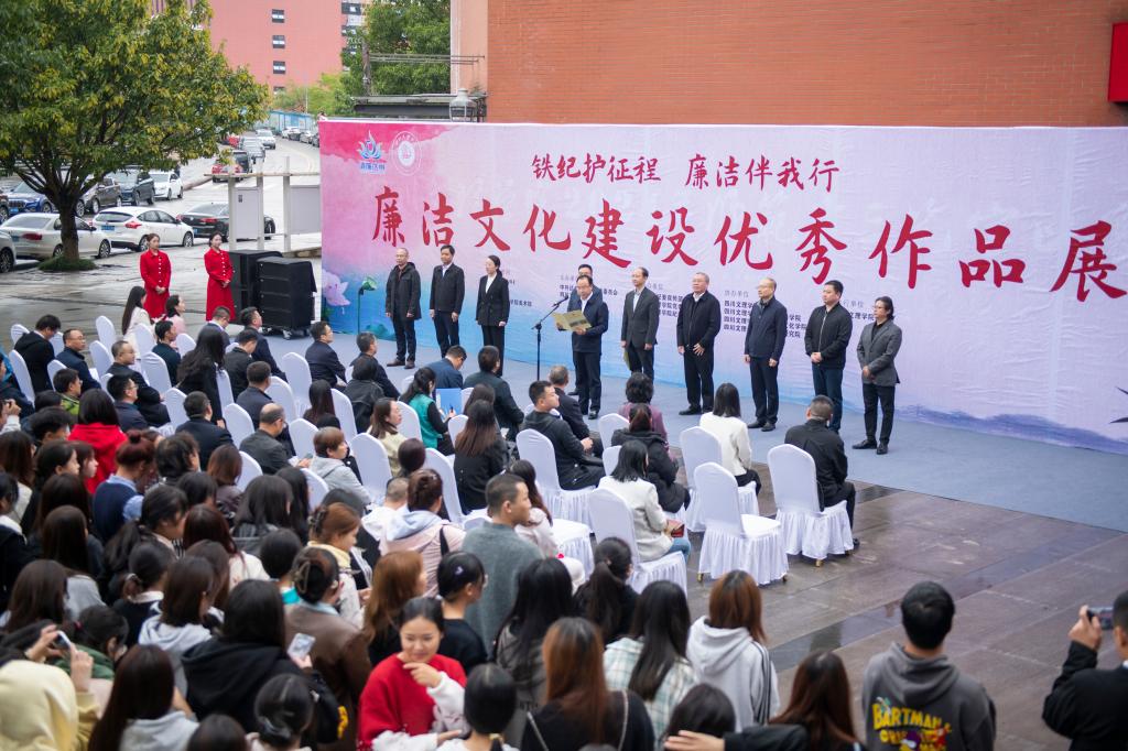11月4日,由达州市纪委和四川文理学院共同举办的“铁纪护征程 廉洁伴我行”廉洁文化优秀作品展在学校美术馆开幕。四川文理学院党委书记黄涛、党委副书记徐晓宗,达州市纪委常务副书记、市监委副主任陈泽健出席开幕式。省纪委监委驻四川文理学院纪检监察组组长、党委副书记、纪委书记帅胤主持仪式。