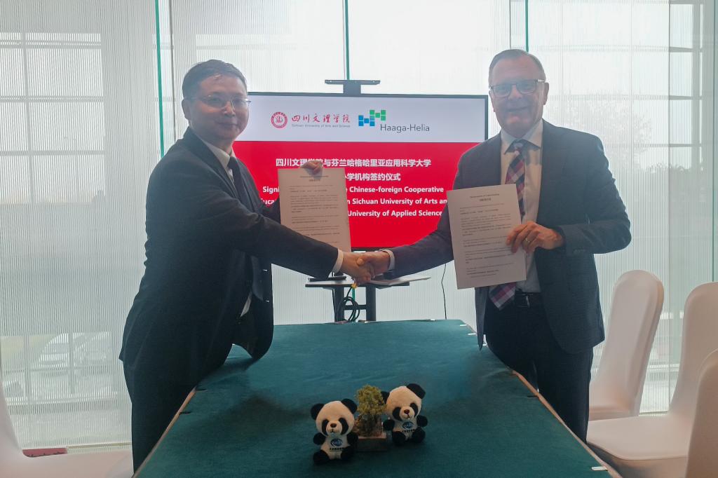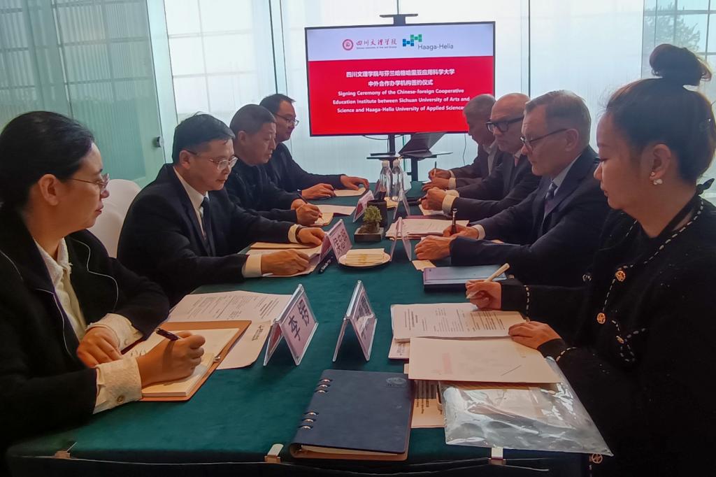 Jouni Ahonen执行校长对我校合作诚意表示感谢,并表达了与我校在教育领域开展深入交流与合作的美好愿望。他指出,2024年8月四川省常务副省长董卫民先生在芬兰哈格哈里亚应用科学大学访问期间十分关注两校的合作情况。芬兰与中国在教育领域的合作不仅拥有深厚的历史渊源,而且已经建立了广泛而坚实的基础。尽管芬兰与中国的教育体系在某些方面存在差异,但两国教育之间也存在着诸多相似之处,双方都非常重视教育的质量,致力于培养学生的创新能力和综合素质。他表示,期待双方未来能够进一步深化务实合作,加强交流与互动,共同提升学科专业的教育质量和水平。