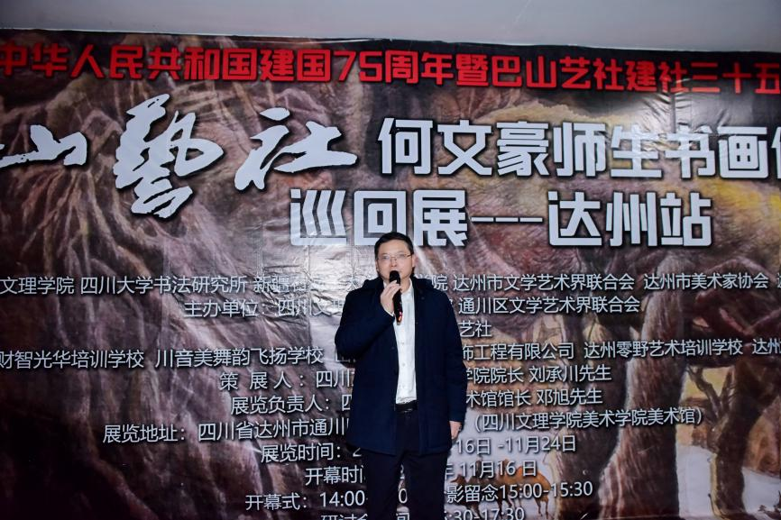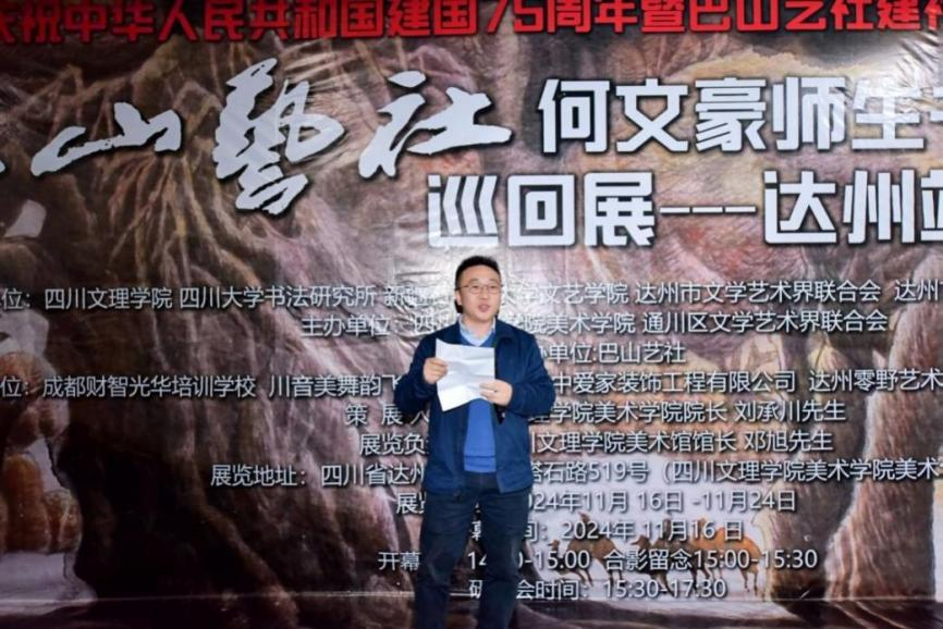 11月16日,“庆祝中华人民共和国成立75周年暨巴山艺社建社35周年——何文豪师生书画巡展(达州站)”在我校美术馆开幕。