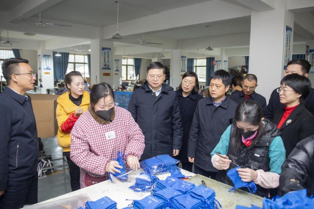 会前,侯忠明一行前往石塘镇柳树村鸿阳箱包厂、杉林湾村蔬菜基地和村村直播基地调研,慰问困难群众和优秀学子。