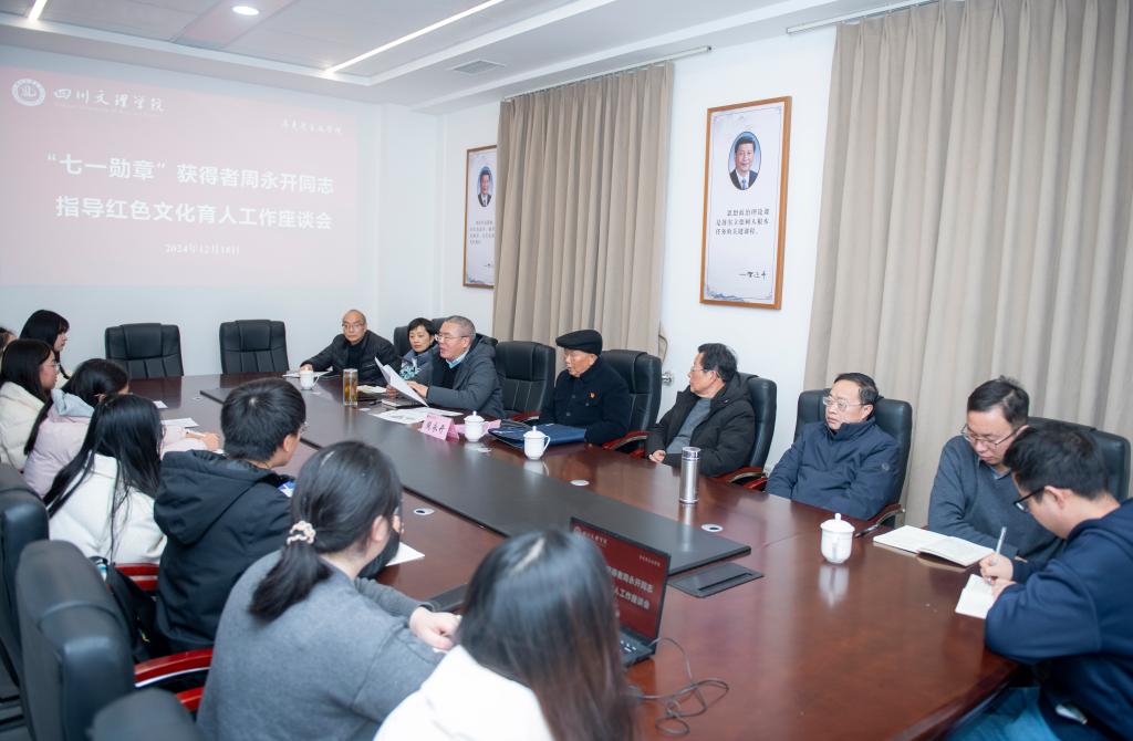 12月16日下午,“七一勋章”获得者、全国优秀共产党员、原达县地委副书记、地区纪委书记周永开同志到马克思主义学院指导红色文化育人工作并召开座谈会,会议由学校党委副书记徐晓宗主持。