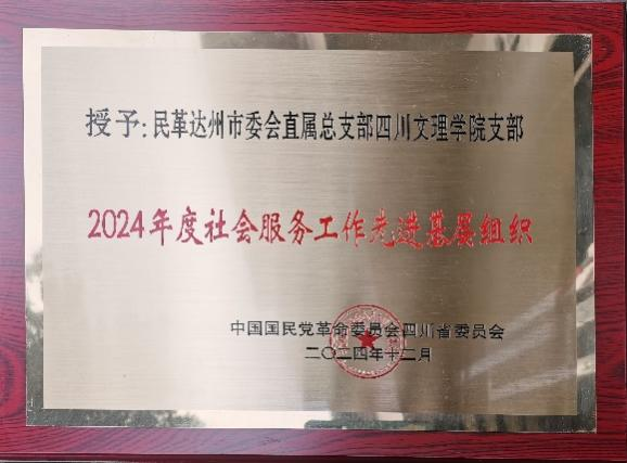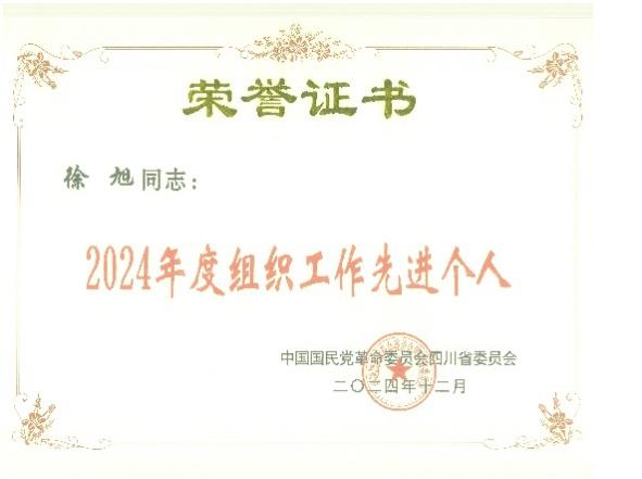 近日,民革四川省委会对2024年度先进集体和先进个人进行了表彰,民革四川文理学院支部荣获“2024年度社会服务工作先进基层组织”,支部主委徐旭被表彰为“2024年度组织工作先进个人”。