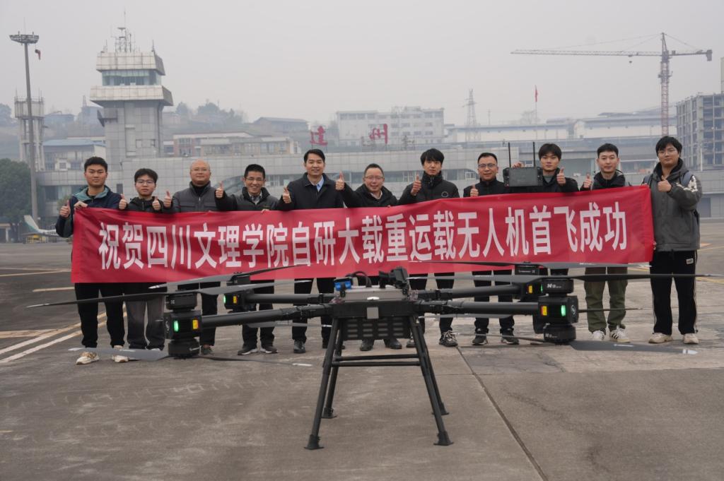1月19日上午,由我校自主研发的大载重运载农用无人机在达州河市通用机场成功完成首飞。市科技局成果科科长杜茂莹、达州产业技术研究院副院长马国春以及四川文理学院智能制造学院(无人机产业学院)师生现场参与并见证了无人机的首飞。
