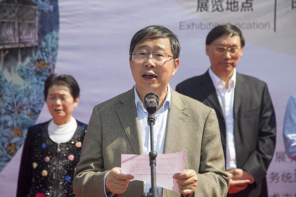 党委书记王成端宣布“文化自信、乡村振兴——彭广素、杨少伯民间艺术展开幕。