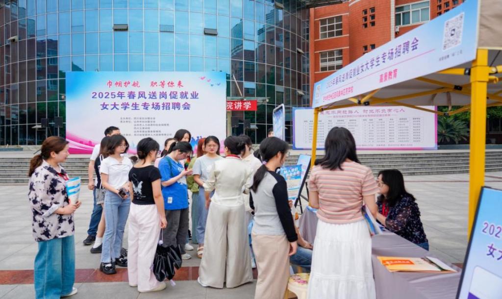 四川兆纪光电科技有限公司、中国移动通信集团四川有限公司达州分公司、中国招商银行等百余家企业齐聚学校,涵盖IT、智能制造、教育、金融等多个行业,带岗5000余个。招聘会现场还设立就业政策咨询指导专区、简历诊断区和直播带岗区,为参会毕业生提供了全方位的就业服务。