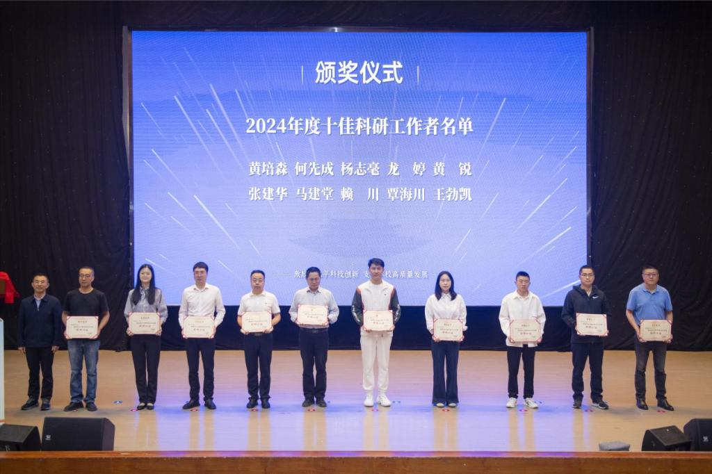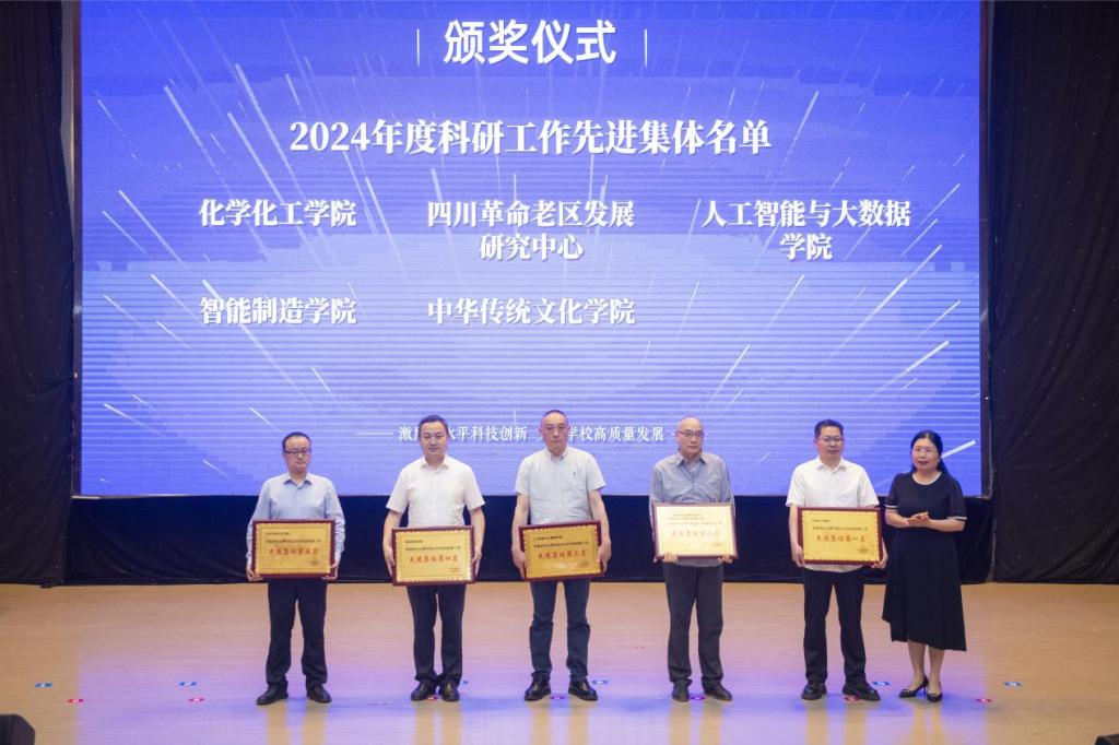 会上表彰了2024年度科研工作先进集体和十佳科研工作者,向二级学院发放2025年度科技工作任务书,为四川文理学院大学科技园、智能医学与健康大数据四川省高等学校重点实验室揭牌。