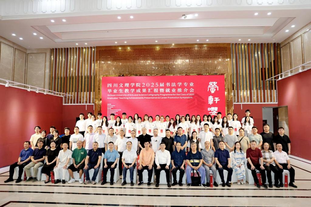 6月8日,四川省书法家协会和我校联合举办的“萤轩嘤鸣”——四川文理学院2025届书法学专业毕业生教学成果汇报暨就业推介会在四川福宝美术馆举行,省书协主席戴跃出席并讲话,学校党委书记黄涛宣布开幕,校长侯忠明致辞,副校长程碧英主持开幕式,省市书协领导、书法艺术界专家、兄弟高校书法教育工作者、我校实习和就业单位嘉宾及师生200余人共襄盛会。