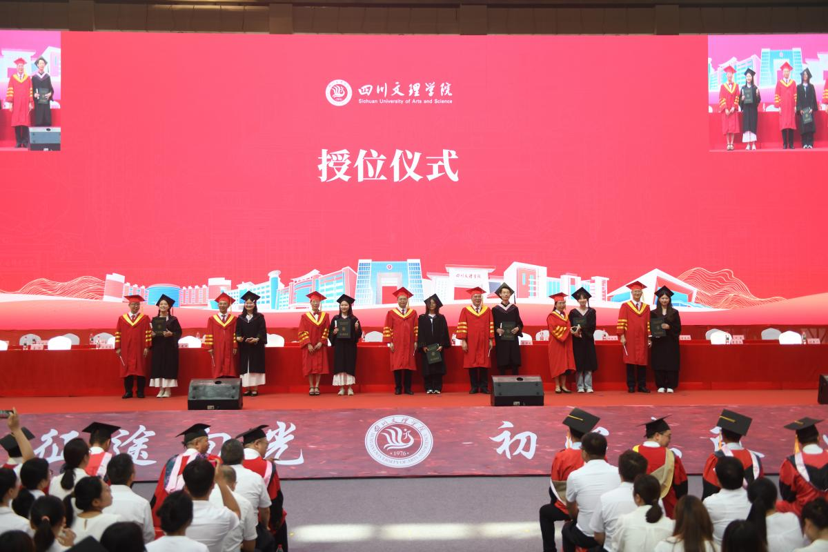 凤凰花开,骊歌轻扬。6月13日上午,四川文理学院2025届学生毕业典礼暨授位仪式在莲湖校区体育馆隆重举行。学校在家校领导,学位评定委员会委员,二级学院及职能部门负责人,教师代表、校友代表,毕业生代表在现场参加典礼,全体毕业生通过学校官方新媒体平台线上参加了毕业典礼。副校长程碧英主持典礼仪式。