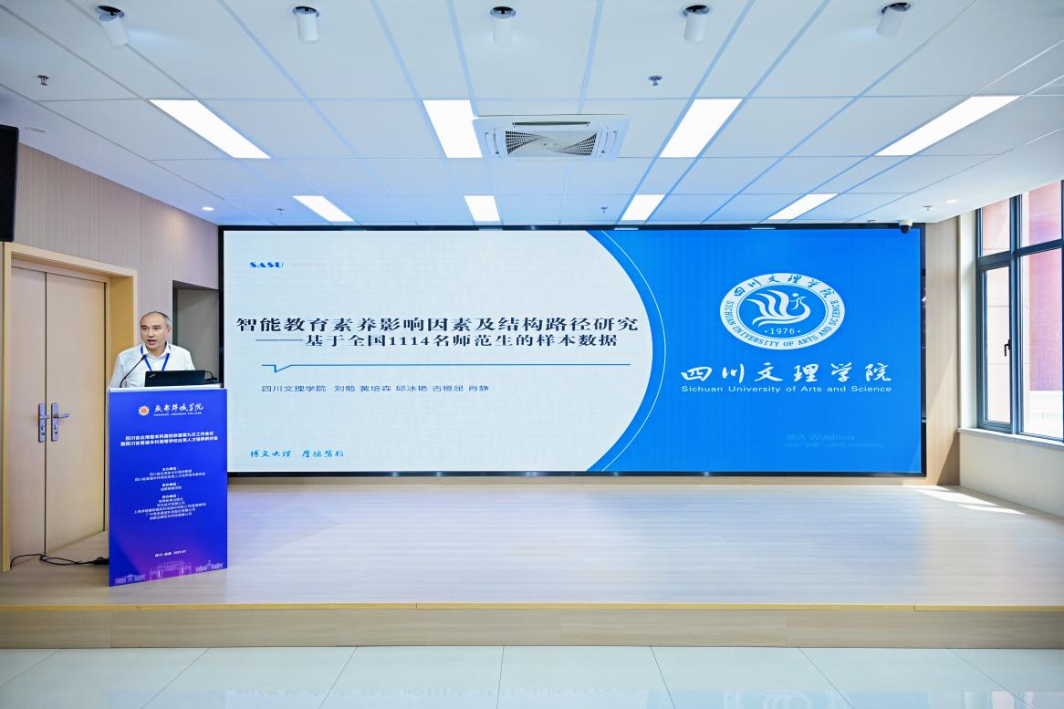 会议还举行了2025年学术交流论文颁奖仪式,我校斩获特等奖1项,一等奖1项,二等奖2项,其中刘勉博士作为特等奖论文代表作交流发言。刘勉博士以“智能教育素养影响因素及结构路径研究”为主题,重点分享了通过大样本的数据调查,利用探索性与验证性因子分析,明确了智能教育素养由“智能教学意识”、“智能教学运用”、“智能教学体悟”和“智能教学伦理”四个因素构成,并且四个因素存在直接正向线性结构路径的研究成果,获得了与会专家的一致好评。